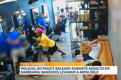 A Polícia Civil conduziu dois suspeitos de participação no roubo contra um policial na cidade de Timon, a 450 km de São Luís, no último dia 31 de dezembro. O policial civil Bruno Tavares trabalha na cidade de União, no Piauí e recebia atendimento em uma barbearia na cidade maranhense quando dois homens entram no estabelecimento comercial e anunciam o assalto. Um deles entra em luta corporal com Bruno, quando um segundo assaltante chega e dispara com ama de fogo contra o policial que cai ao chão. Os homens fugiram do local levando a arma do policial civil. O policial recebeu atendimento médico e não corre risco de morte.