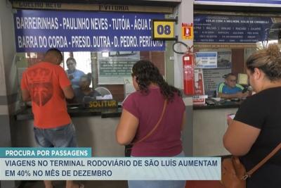 Com a chegada do fim do ano, é grande a procura por passagens de viagens e a movimentação no Terminal Rodoviário de São Luís, gerando um aumento de 40% na movimentação de passageiros no mês de dezembro. Os destinos favoritos são as cidades no interior do Maranhão, e a cidade de Belém, capital do Pará.