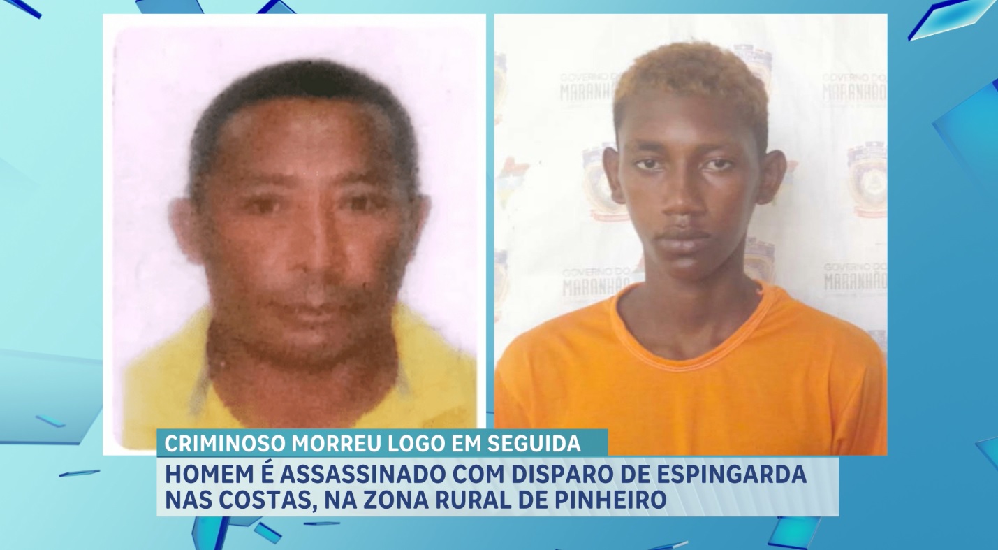 Um homem foi assassinado com um tiro de espingarda nas costas, na zona rural de Pinheiro, na Baixada Maranhense. O principal suspeito do crime morreu logo em seguida.