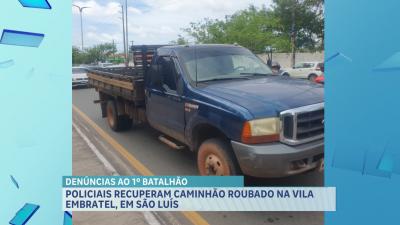 A Polícia Militar recuperou um caminhão de carga que havia sido roubado no bairro da Vila Esperança, em São Luís. Segundo a PM, o caminhão foi encontrado abandonado na região do bairro Gapara, área Itaqui-Bacanga.