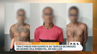 A Polícia Militar prendeu três homens suspeitos de tráfico de drogas na região da Vila Embratel, em São Luís.