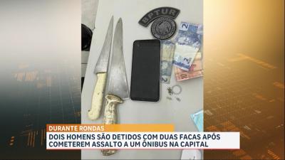 Policiais militares conduziram dois homens suspeitos de assalto em um ônibus da linha Gapara nessa quarta-feira (20) em São Luís. A dupla tentou fugir, mas foram abordados pela por policiais do motopatrulhamento do Batalhão de Polícia Militar de Turismo (BPTUR). Segundo o tenente Christian, com os suspeitos foram encontradas duas facas e um aparelho celular.