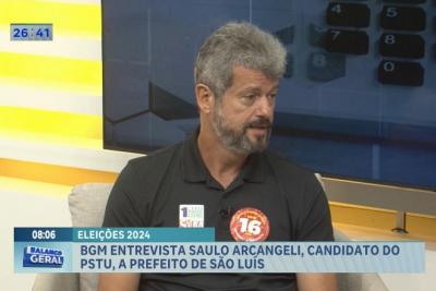 Nessa quinta-feira (5), o programa Balanço Geral Manhã recebeu o terceiro candidato a prefeito de São Luís, Saulo Arcangeli (PSTU). O candidato respondeu as perguntas feitas pelos apresentadores Naassom Saldanha e Samya Portela, na série de entrevistas que começou no dia 19 de agosto.